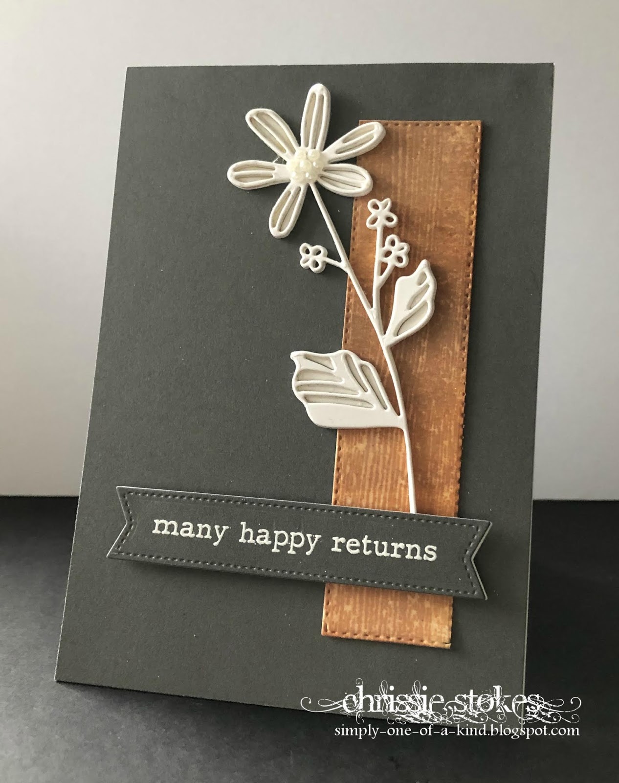 The sentiment is from an old Magenta stamp simply embossed in Gold and cut with a tiny stitched rectangle die. I had to extend this by just a couple of stitches in order to fit around the image completely.