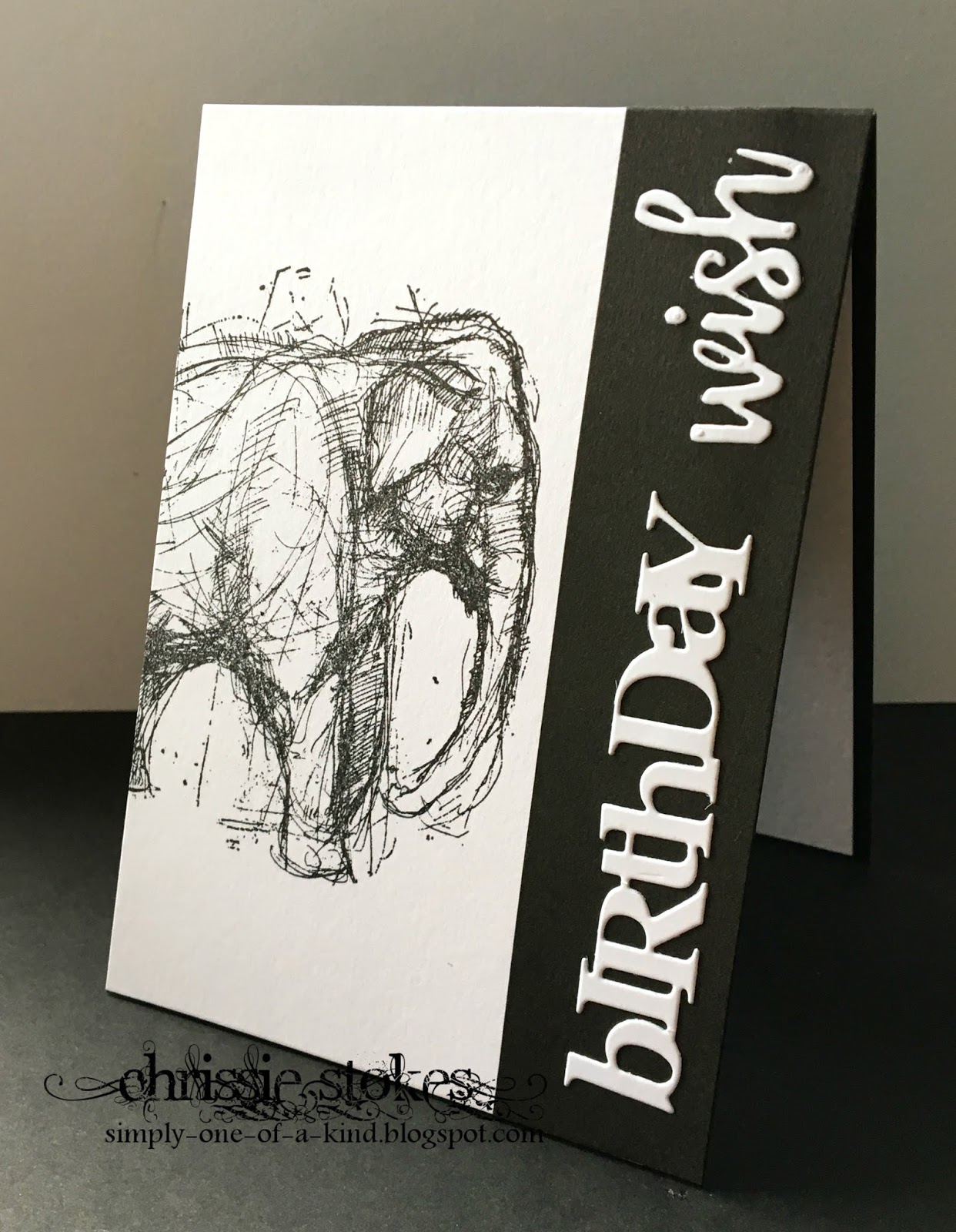 Here's that sketchy elephant from Stampers Anonymous again. This time I paired it with a simple die cut Birthday sentiment from Papertrey Ink. Sadly I don't remember the make of the 'wish' die.